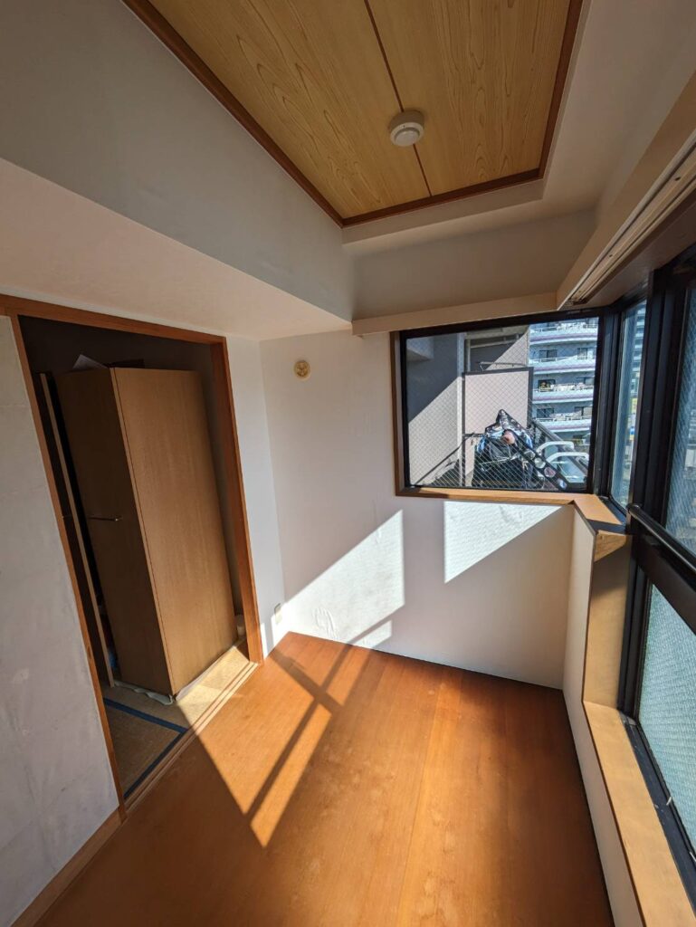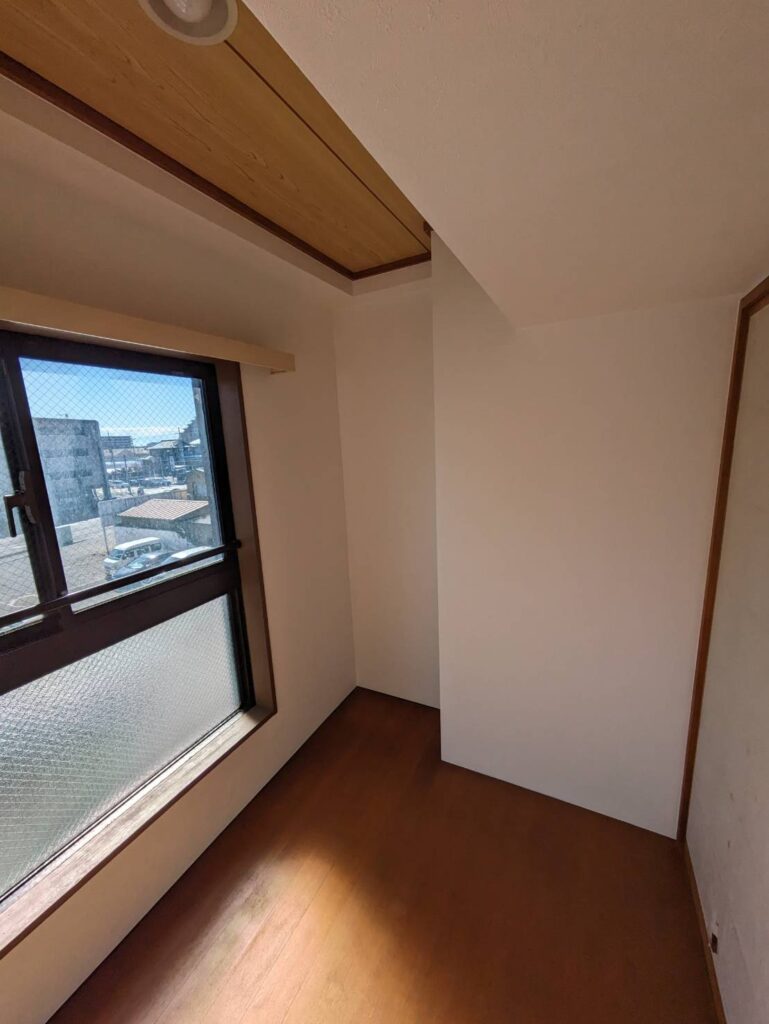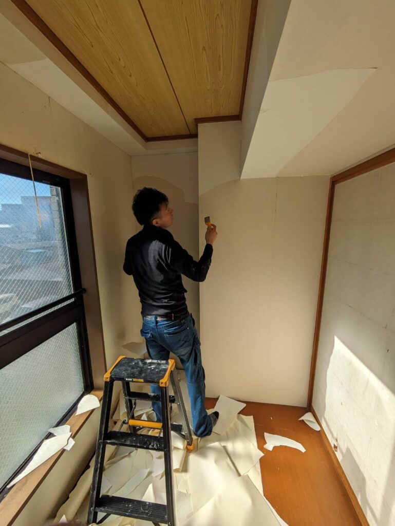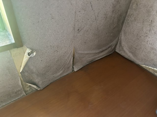 壁面にカビが発生していたため、既存クロスを剥がしたうえでカビ止め処理をしっかり施し、新しいクロスで仕上げています。