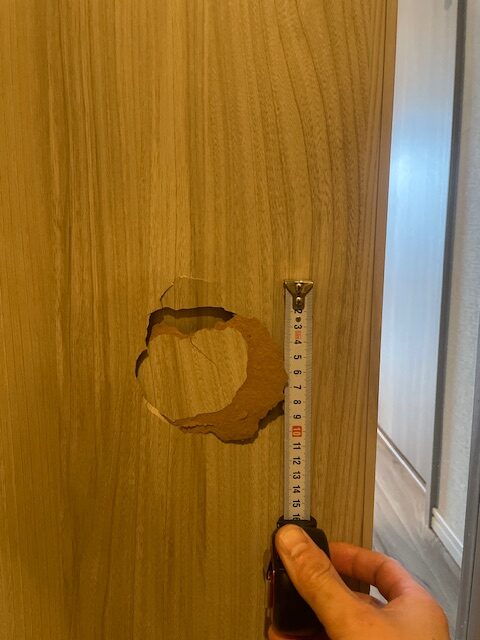 建具に大きな穴が空いてしまったとのご相談を受け、下地補修と表面のリペア修繕を実施。
