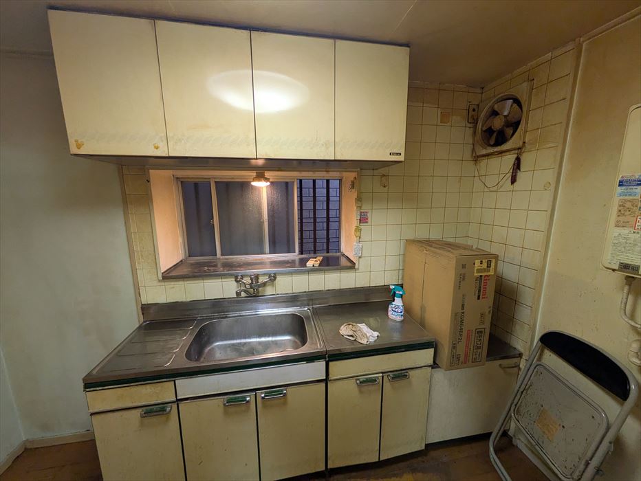 既存キッチンの老朽化に伴い、扉交換・クロス貼替・ダイノックシート施工・塗装の塗り替え、さらにハウスクリーニングまで一括対応。
